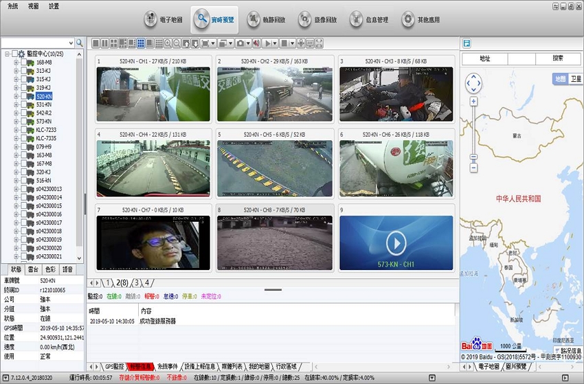 每一輛曳引車均裝設有行車影像記錄器、8只攝影鏡頭、500G記憶體容量,加強行車安全管理,降低行車在外肇事率,並配合管理人員定期由行車影像畫面稽核駕駛員駕駛行為,達成安全監控。