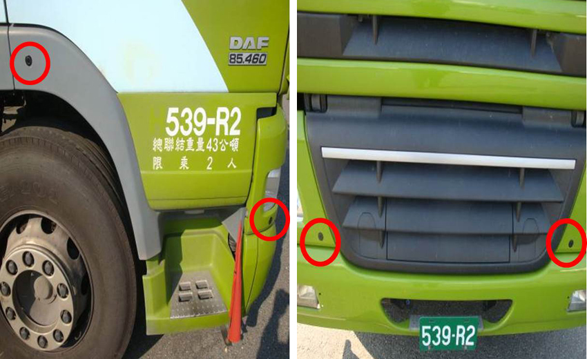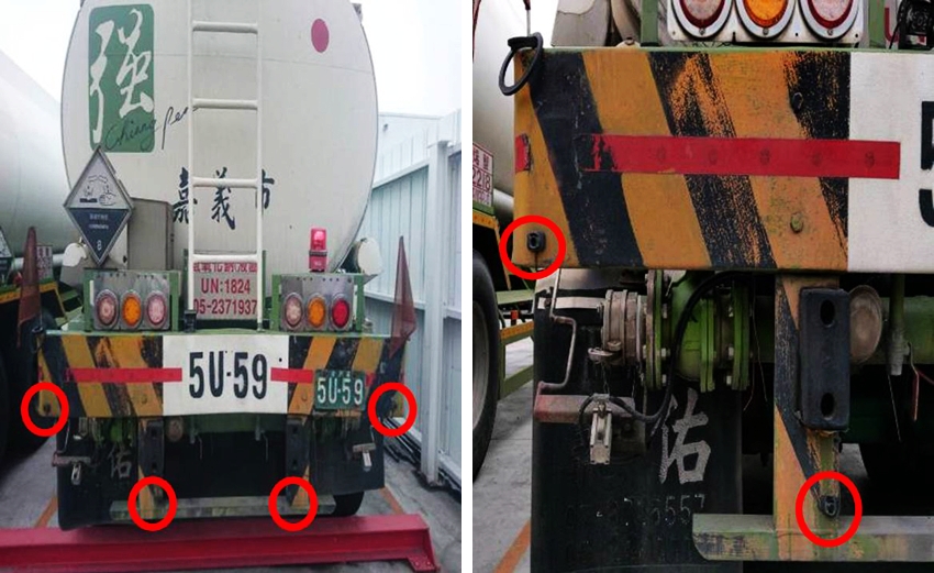 於半拖車後保險桿裝設四只倒車雷達裝置,當倒車時後方有障礙物時,車廂內會有蜂鳴警示聲。