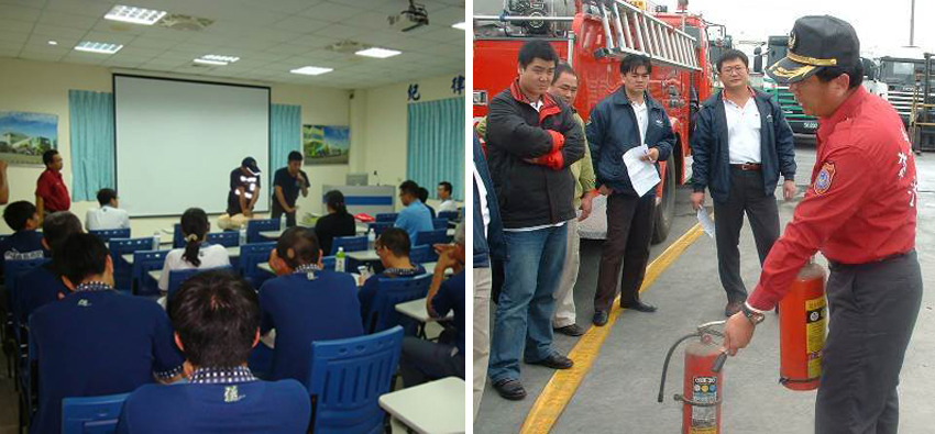 本公司舉辦100年度消防講習,特邀請嘉義縣消防局太保分隊 蔡周霖教官,蒞臨公司實施